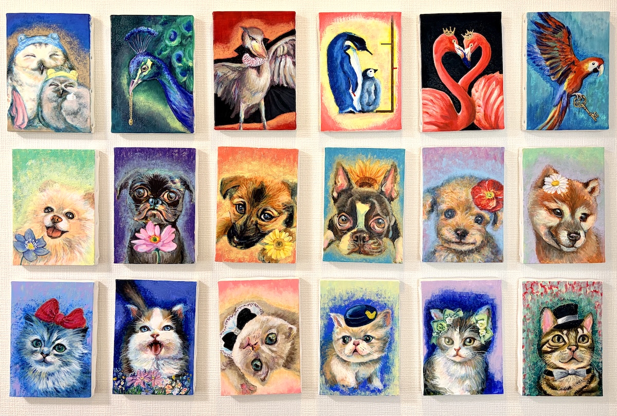 テクスチャーアートで描いた犬や猫の小さな原画シリーズ「Little Companions」作品一覧
